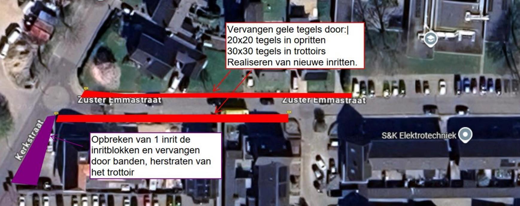 Gebr. van Kessel Wegenbouw B.V. gaat, in opdracht van de gemeente Montferland, werken aan de stoepen van de Zuster Emmastraat in Didam.